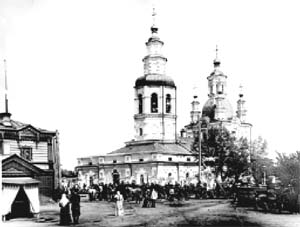 Деревянных предшественниц Покровской церкви было несколько, первая из них была срублена еще в середине ХVII в. на территории "большого города", в юго-западной части торгово-ремесленного посада (район пересечения современных улиц Мира и 9 января). После пожара 1773 года встал вопрос о строительстве новой Покровской церкви. Несмотря на то, что по "высочайше утвержденному" плану города Покровской церкви предстояло стать каменной, прихожане обратились к тобольскому архиепископу Варлааму с просьбой разрешить выстроить им вновь деревянную церковь "невеликую, чтоб около оной можно было заложить и каменную".